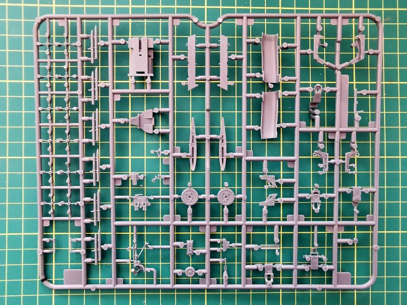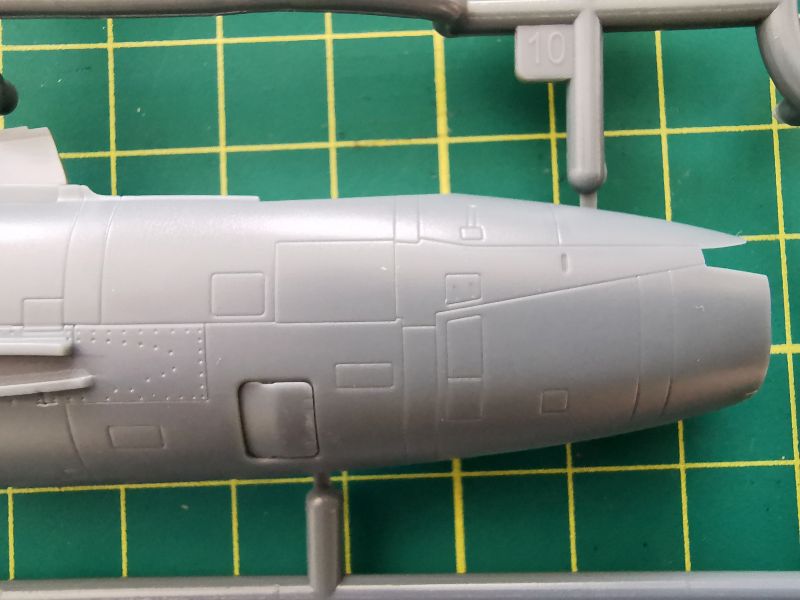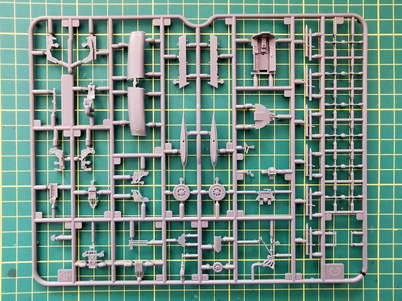 Zestaw składa się z czterech wyprasek z szaroniebieskiego plastiku, co już powinno dawać do myślenia. Tak, ten model podobnie jak Super Mystère wydany nie tak dawno w skali 1/48 jest modelem zaprojektowanym całkowicie z użyciem technologii cyfrowej. Detale bardzo delikatne i wyraźne zarazem, wystarczy spojrzeć na połówki kadłuba i ich fakturę, czy detale podwozia, które też się tu znajdują. Co ciekawe, w przypadku komór podwozia głównego producent zastosował ten sam patent, co w Super Mystère, czyli wklejane w skrzydła szkielety komór. Jestem bardzo ciekaw, jak sprawdzi się to w praktyce. Może to ukłon w kierunku tych, co lubią odtwarzać imitacje różnego rodzaju instalacji, czyli kłaść kabelki?