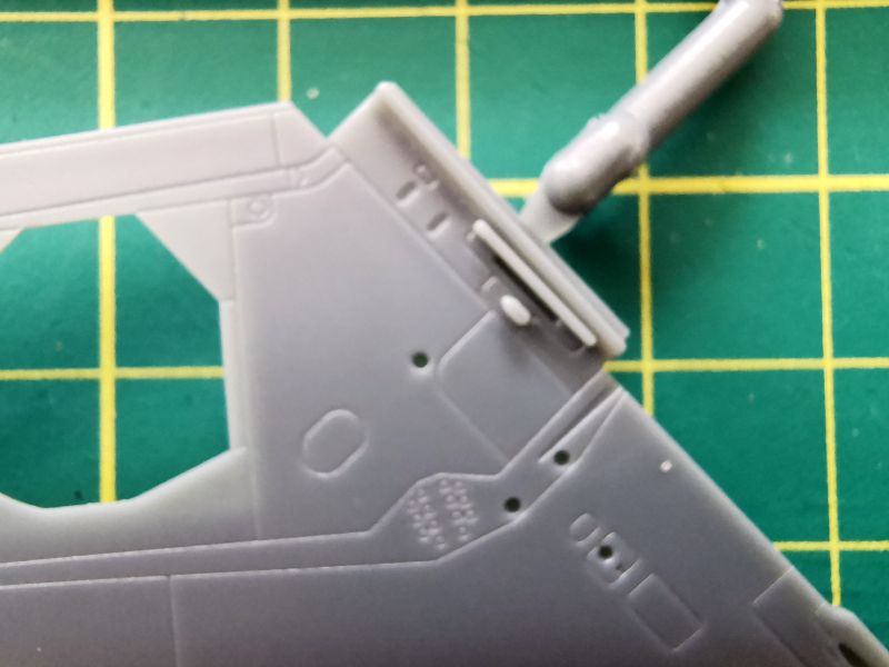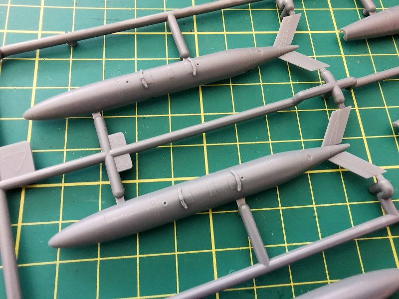 Z kolejnej ramki wykorzystamy także niewiele, bo jeden odrzucany zbiornik paliwa oraz kilka drobiazgów. Zawartość tej ramki to głownie podwieszane zbiorniki paliwa. Tu jednak mała uwaga, odpowiednio bogata dokumentacja powinna dać pole do wykorzystania większej ilości detali na tej ramce, podobnie ma się rzecz z niekierowanymi pociskami rakietowymi, o których wspominałem poprzednio.