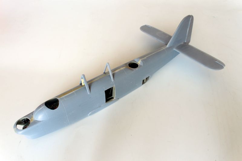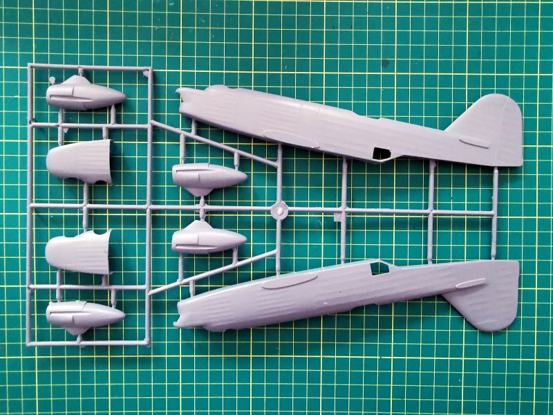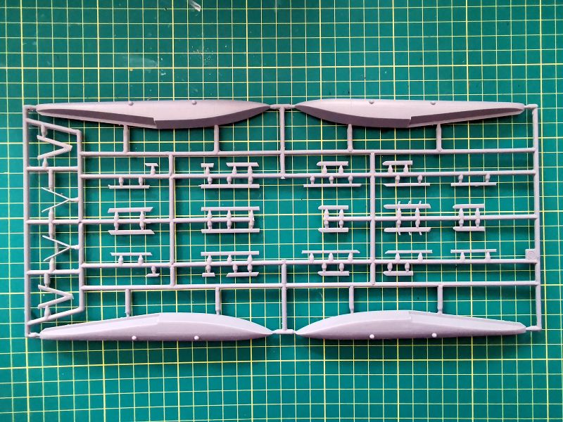 Ramki wtryskowe stanowiące podstawowe komponenty zestawu są cztery, a wykonano je z szarego tworzywa, którego producent od dawna używa do produkcji swoich modeli. Pierwsza z nich zawiera połówki kadłuba, alternatywną część nosową (której nie wykorzystamy) oraz gondole silników. Pierwsze, co zwróciło moja uwagę podczas oglądania wyprasek to gładka powierzchnia elementów, brak tarki, charakterystycznej dla poprzedniej edycji. Każdy kto miał styczność z modelami Special Hobby czy MPM sprzed przynajmniej dekady, wie o co chodzi. Faktura powierzchni krytych płótnem nie jest przekombinowana w żadną stronę (wtedy też nie była) a linie podziału wyraźne i równe. Świadczy to, że formy zostały zregenerowane. Nic natomiast nie zmieniło się w kwestii gondoli silnikowych. Nie zawierają kilku charakterystycznych szczelin, których brak może razić. Pamiętam, że pociąłem gondole piłką po liniach podziału i po wybraniu zbędnego tworzywa skleiłem z powrotem, a efekt był znacznie lepszy.