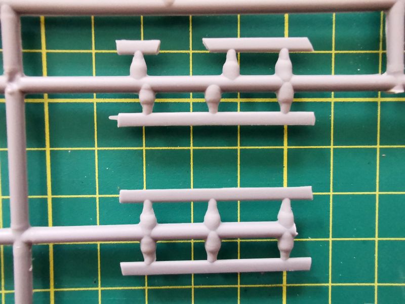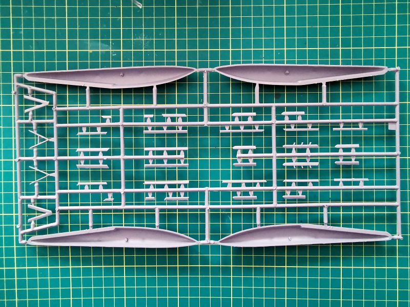 Druga wypraska zawiera pływaki oraz wszelkiego rodzaju wsporniki i zastrzały. Pływaki mają klasyczny podział, brakuje im natomiast kilku okrągłych luków inspekcyjnych, których dorobienie nie jest specjalną filozofią. Znacznie ciekawsze są wsporniki. Jest ich dużo, zaś w poprzedniej edycji dodatkową atrakcją był brak ich numeracji, co wymagało szczególnej uwagi podczas montażu. Teraz numeracja jest w instrukcji, co jednak nie zwalnia nas z zachowania „szczególnej uwagi” o której wspominałem poprzednio.