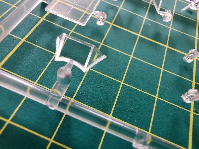 W poprzedniej edycji oszklenie wykonane było metodą vacu, zaś wytłoczka zawierała dwa komplety oszklenia. Od pewnego czasu producent zastępuje vacu oszkleniem wykonanym metodą wtryskową, uzyskując bardzo dobre efekty. Omawiany zestaw jest tego wymownym przykładem. Oszklenie to niewielka ramka zawierająca dokładnie te elementy, jakie kiedyś miały postać wytłoczki. Jakość elementów wtryskowych jest bardzo dobra, ramy równe i wyraźne, zaś szkło dość cienkie o dobrej przejrzystości, bez efektu soczewki. No i znacznie łatwiejsze w montażu.