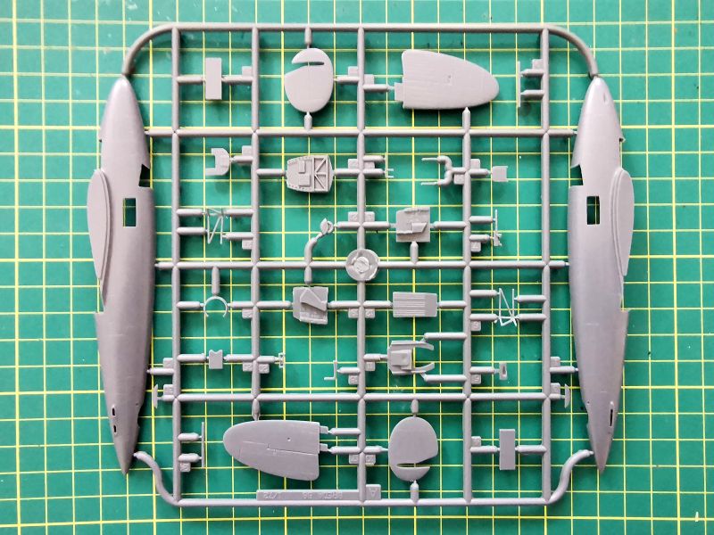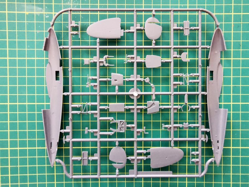 Podstawowe elementy modelu zostały rozmieszczone na trzech ramkach z szarego polistyrenu, jakiego czeski producent od dawna używa do produkcji. Ponieważ nie miałem w ręku poprzednich wydań tego modelu, nie podejmuje się oceny tego, czy formy przeszły jakąś regenerację, czy też nie. Na pierwszej z nich znajduje się kadłub, usterzenie oraz detale kokpitu. Pamiętać należy o technologii w jakiej ten model został wykonany, jeśli ktoś będzie chciał psioczyć na nadlewki. W kilku miejscach są, ale są łatwe do usunięcia. Linie podziału Balch na połówkach kadłuba są oczywiście wgłębne i wyraźne, podobnie rzecz ma się na elementach usterzeniach. Wszystkie powierzchnie sterowe stanowią integralne elementy stateczników i skrzydeł. Robią przyjemne wrażenie, podobnie jak detale kabiny. Jest ich dość sporo, są poprawnie wykonane, a jak ktoś dołoży nieco pracy i własnej inwencji, to może osiągnąć bardzo dobry efekt.
