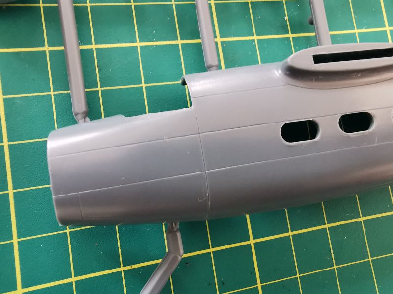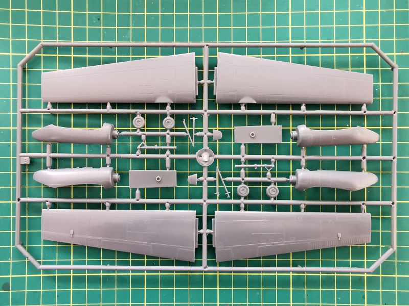 Podstawę zestawu stanowią cztery wypraski z jasnoszarego tworzywa. Dość twardego, znanego z wcześniejszych modeli czeskiego producenta. Na pierwszej z nich znajdziemy kadłub wraz z większością detali wnętrza (zabudować możemy zarówno kokpit jak i kabinę pasażerską) oraz usterzenie poziome. Wszystkie powierzchnie sterowe wykonano jako integralne elementy skrzydeł i usterzenia. Jeśli chcemy mieć na przykład klapy w pozycji wychylonej, konieczna jest praca samodzielna, lecz w przypadku tego modelu, jest niewielka różnica, ponieważ większość elementów musimy oczyścić z drobnych nadlewek i wyrównać krawędzie oraz miejsca styku połówek form. Połówki kadłuba są pozbawione kołków ustalających, zaś linie podziału, mimo, że wykonane ręcznie, prezentują się całkiem nieźle. Są równe i wyraźne.