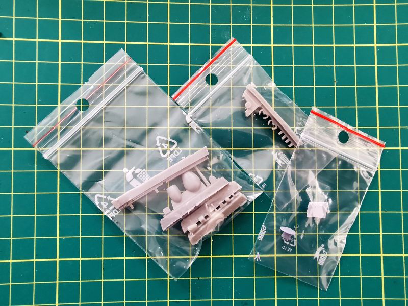 Tego typu model raczej nie może istnieć bez dodatków w postaci blaszek i żywic. Widoczna na zdjęciu blaszka była w zestawie od jego pierwszego wydania. Są to głównie podzespoły podwozia, ale są też inne przydatne elementy. Także dodatki żywiczne były w tym modelu od jego pierwszego wydania. W tym mamy aż trzy torebki pełne modelarskiego dobra.