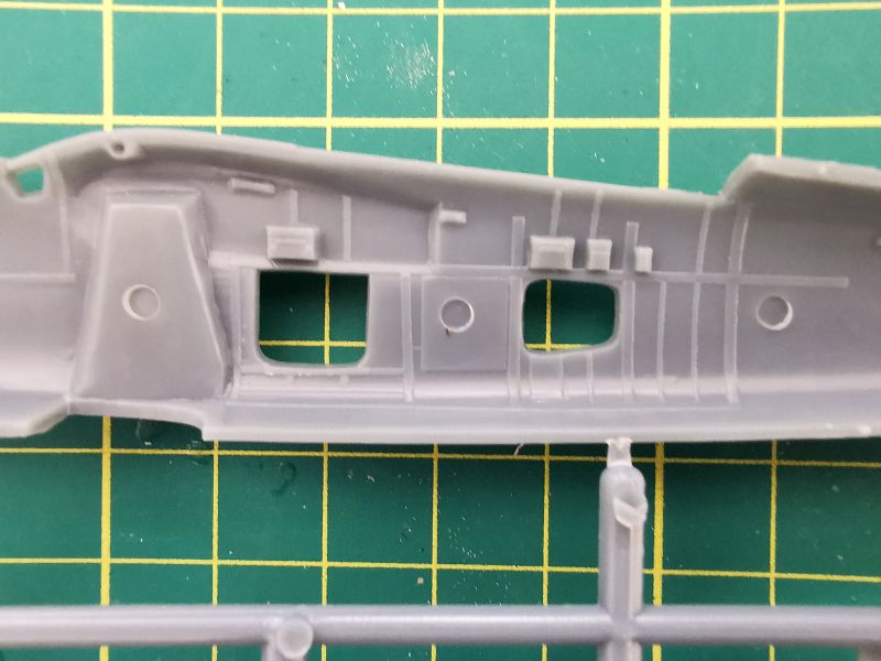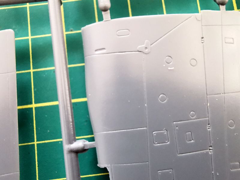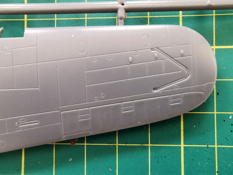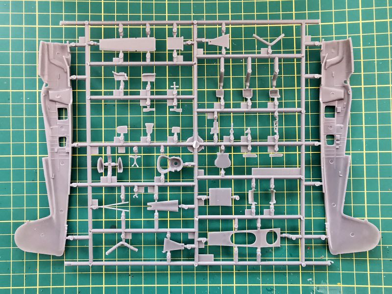 Zestaw bazuje na trzech wypraskach z szarego polistyrenu. Pierwsza z nich to podzielony w sposób klasyczny kadłub oraz dość spora ilość wyposażenia kabiny załogi. Ta wypraska została wykonana bez u życia technologii cyfrowych. Spory nacisk poświęcono na możliwie wierne oddanie szczegółów konstrukcji samolotu. Linie podziału blach na kadłubie są oczywiście wklęsłe, może nie tak sterylne, jak we współcześnie wydawanych modelach z form stalowych, ale wyraźne i równe. Mamy dość sporo detali wnętrza zarówno także na burtach kadłuba. Jest to zupełnie zrozumiałe, bo przez oszklenie będzie sporo widać.