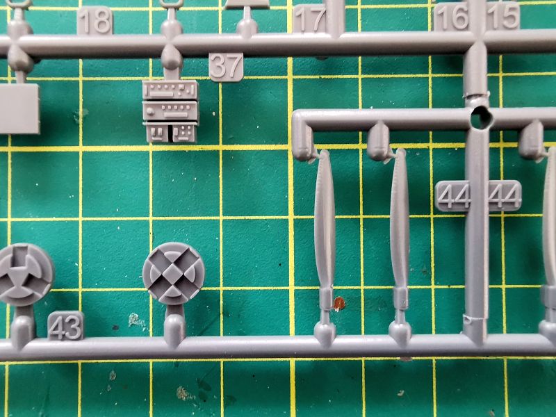 Trzecia wypraska została zaprojektowana przy wykorzystaniu technologii cyfrowych i bardziej przypomina modele z form stalowych z którymi short runy są często niesłusznie porównywane. Tu znajdziemy detale kabiny załogi, podwozie, śmigło oraz podwieszane środki walki. Dysponujemy także kilkoma opcjami. Do wyboru mamy bombę lotniczą lub torpedę, obowiązkowo z drewnianym stabilizatorem. Są tez dwa rodzaje kół oraz dwa rodzaje śmigieł. Trójłopatowego jednak nie wykorzystamy.