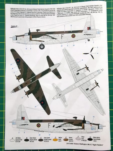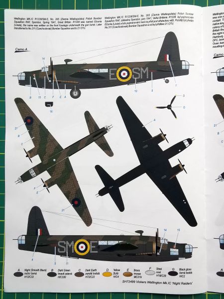 Jak zaznaczyłem powyżej opcji malowania jest sporo. Dwie z nich to maszyny z dywizjonów czechosłowackich, jedna brytyjska, stacjonująca w Egipcie, no i dwie z dywizjonów polskich. Pierwsza to klasyczne malowanie z 305 Dywizjonu Bombowego, dokładniej samolot SM E o własnej nazwie „Elżunia”, widniejący zresztą na boxarcie. Samolot ten latał później w jednym z dywizjonów czechosłowackich, o czym także możemy przeczytać w notatce zamieszczonej przy rzeczonym schemacie. Druga propozycja to samolot należący do 304 Dywizjonu Bombowego w malowaniu Costal Command. Polskie Wellingtony zanotowały sukcesy w walce z U-bootami, więc to właśnie malowanie jest jak najbardziej godne uwagi.