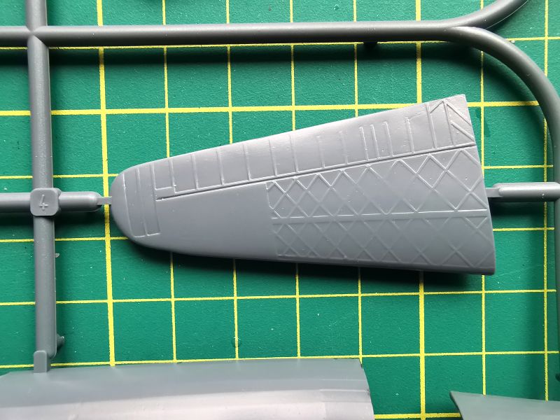 Kolejna wypraska to skrzydła i górne elementy stateczników poziomych. Co do faktury powierzchni także nie mam zastrzeżeń i ograniczę się tu jedynie do uwagi, że wszystkie powierzchnie sterowe zostały wykonane jako integralne elementy skrzydeł i usterzenia.
