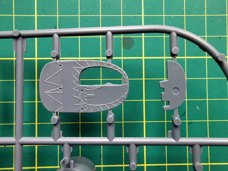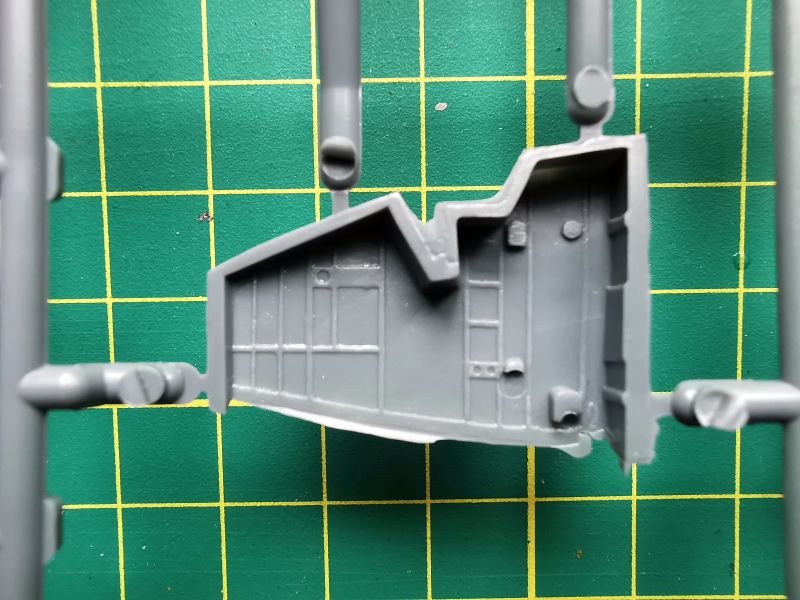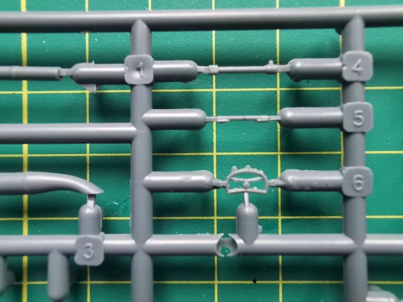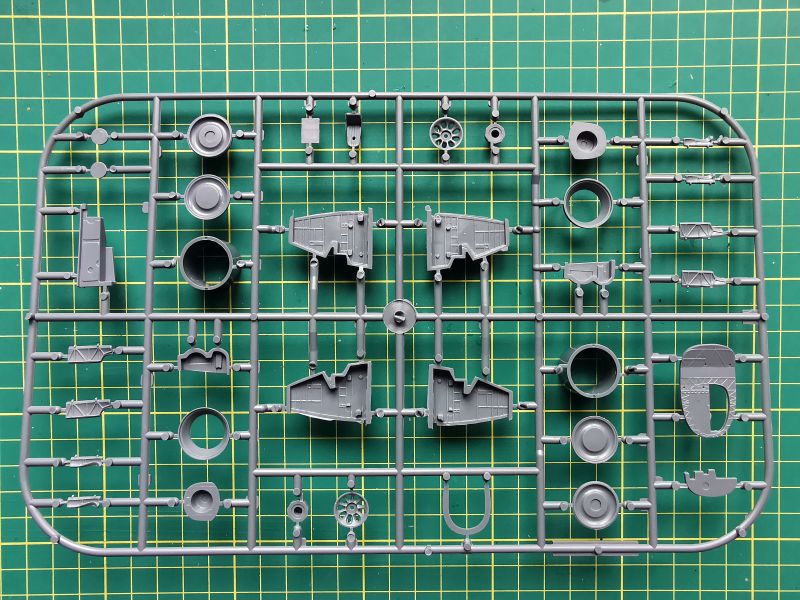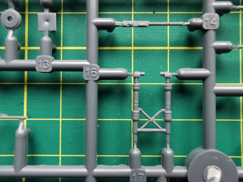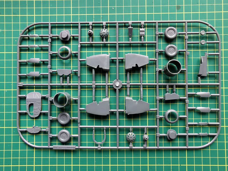 Zawartość kolejnej wypraski to podzespoły silników i podwozia głównego. Jest też trochę detali kabiny pilota. Co ciekawe, silniki zaprojektowano w podobny sposób, jak się to robi przy ich żywicznych zamiennikach. Cylindry to osobne elementy, które przyklejamy do bloków silników. Takie rozwiązanie ma też swoje zalety, bo łatwiej nam będzie z waloryzacją, jeżeli zdecydujemy się ją wykonać we własnym zakresie. Jakość wykonania drobnych detali jest niezła, biorąc pod uwagę technologię wykonania i czas w jakim powstawały. Będą oczywiście wymagać trochę pracy i obróbki, ale tragedii nie ma.