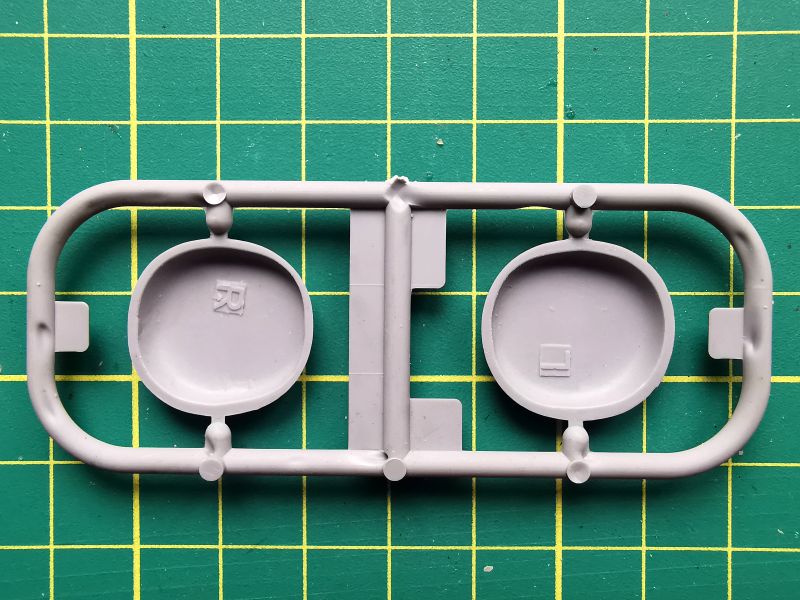 Ostatnia wypraska zawiera przednie części gondoli silnikowych. Na nich zamontujemy silniki wraz z osłonami. Obydwa elementy mają na wewnętrznych stronach zaznaczone litery „L” i „R”, co powinno ułatwić nam prawidłowy ich montaż. Nie wiedzieć czemu, ta wypraska ma zupełnie odmienny kolor od pozostałych. Może to jest właśnie modyfikacja, o której wspominał producent?
