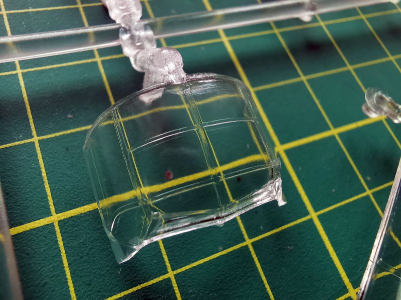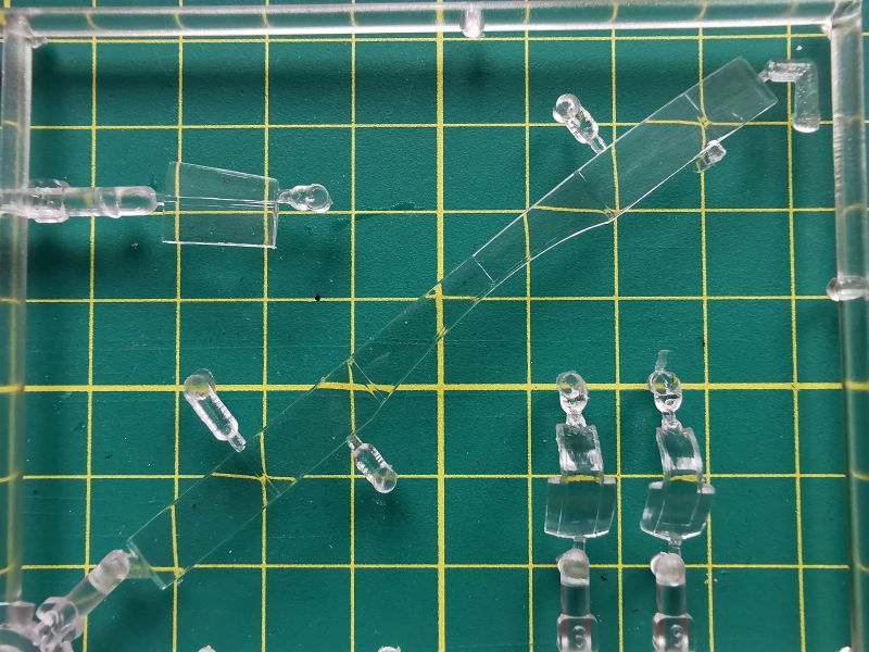 Oszklenie to aż dwie wypraski. Na większej znajdziemy jego podstawowe elementy, na mniejszej oszklenie bocznych stanowisk strzeleckich, o których już wspominałem. Jedyne zastrzeżenie jakie mam do oszklenia, to brak imitacji konstrukcji geodetycznej kadłuba w bocznych oknach. Żeby budowany przez nas model wyglądał poprawnie, musimy te elementy bezwzględnie odtworzyć. Była zresztą o tym mowa powyżej.
