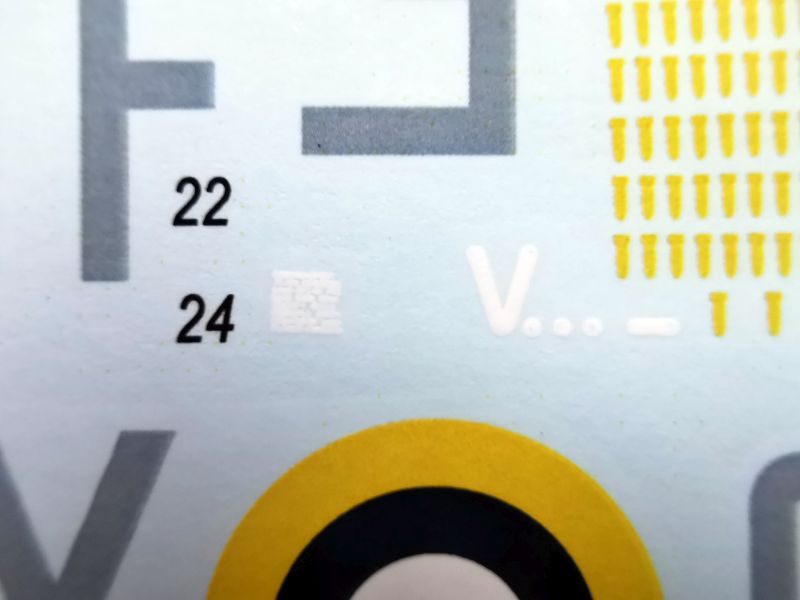 Kalkomania to dość spory arkusik, bo oznaczeń sporo a i malowań producent nie pożałował. Jeśli chodzi o stronę merytoryczną i technologiczna, to nie mam uwag, wystarczy spojrzeć na zamieszczone zdjęcia. Niestety nie znajdziemy na niej kalkomanii z tarczami zegarów, bo przy nieźle wykonanych tablicach przyrządów, takie kalki byłby wskazane. Początkowo myślałem, że kalkomania to prosty reprint malowań z poprzednich wydań, ale po dokładniejszym sprawdzeniu, okazało się, że nie. Malowania przygotowano specjalnie do tego wydania modelu.