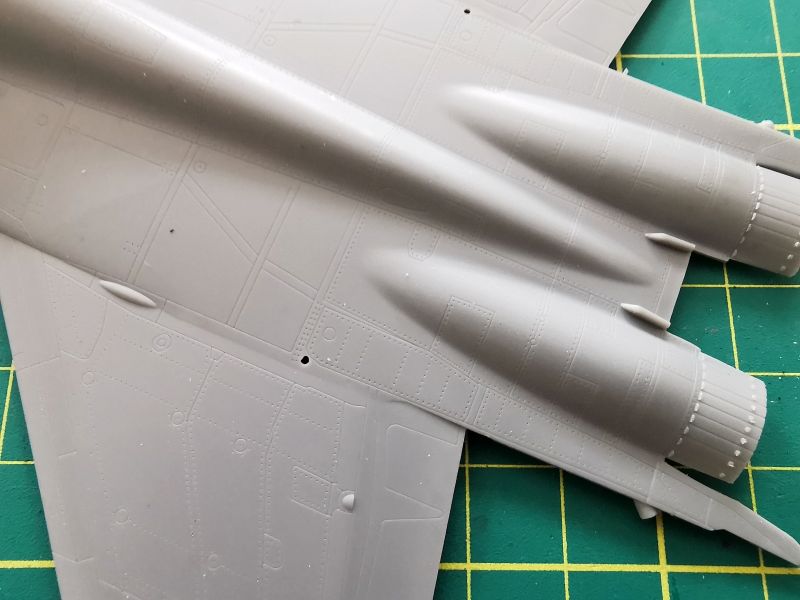 Z modelami Trumpetera bywa różnie. Zdarzają się lepsze i gorsze, zarówno pod względem merytorycznym, jak i technologicznym. MiG-29 zalicza się zdecydowanie do tych lepszych, co mam nadzieję widać na zamieszczonych przeze mnie zdjęciach. Przemyślany podział technologiczny, pięknie odtworzona faktura powierzchni ze szwami nitowymi. Do tego dochodzi spora ilość detali takich jak luki podwozia, samo podwozie, kokpit, dysze silników i uzbrojenie. Jeżeli dołożymy do tego wychylone lotki oraz osłonę kabiny bez koszmarnego szwu przez linię symetrii, to już wiemy z czym przyjdzie nam obcować w przypadku wzięcia tego lub podobnego zestawu na warsztat.