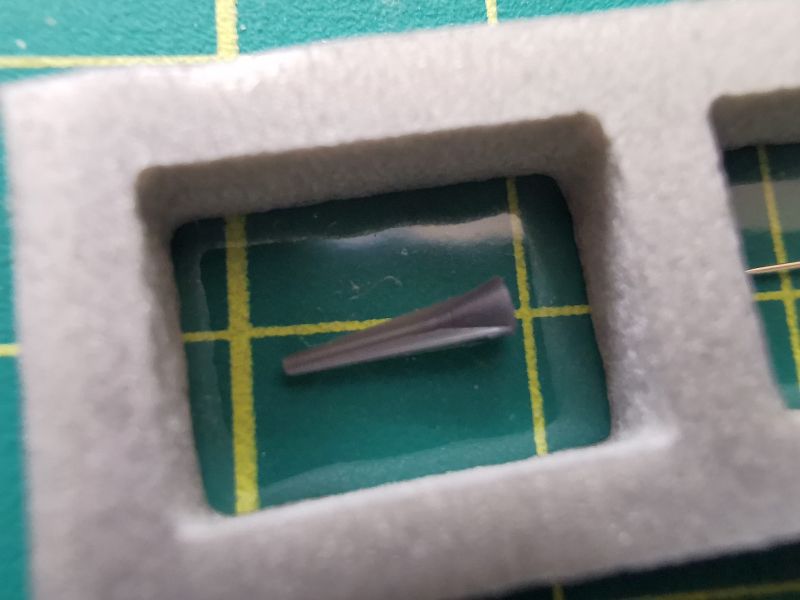 MiG-29 ma bardzo charakterystyczną rurkę pitota, z czymś w postaci podłużnych trójkątnych stabilizatorów. Elementy wtryskowe w modelach wypadały różnie. Trumpeter nie jest tu wyjątkiem. Detal ten w ich wykonaniu wymaga waloryzacji w uwagi na ograniczenia technologiczne. Jest po prostu toporny i nie wpisuje się we współczesne standardy. Na rynku obecnie mamy wiele zestawów, przy pomocy których ten element można poprawić. Zazwyczaj są to wytoczone w metalu rurki pitota do których należało dokleić fototrawione stabilizatory. Czasem same stabilizatory wchodziły w skład zestawów elementów fototrawionych. Montaż tych stabilizatorów nie należał do łatwych i nie zawsze wychodził zgodnie z oczekiwaniami. W omawianym zestawie rurkę pitota opracowała i wykonała szczecińska firma Master Model. Tego producenta także nie trzeba nikomu przedstawiać. Zastosowano tu niezwykle sprytny i prosty patent. Metalową rurkę pitota wkładamy w wydruk stanowiący jej podstawę. Ma ona stabilizatory już na swoim miejscu, więc odpada wycinanie, pasowanie, przyklejanie, przeklinanie i temu podobne czynności. Wystarczy złożyć w całość i wkleić na swoje miejsce. Jak widać na zdjęciach rurka pitota jest solidnie zabezpieczona przed przypadkowym uszkodzeniem, zaś na torebce znajdziemy logotyp producenta. Swoja drogą, ciekawe czy ta rurka znajdzie się w stałej ofercie Master Model, bo na chwilę obecną znaleźć ją możemy tylko w tym zestawie.