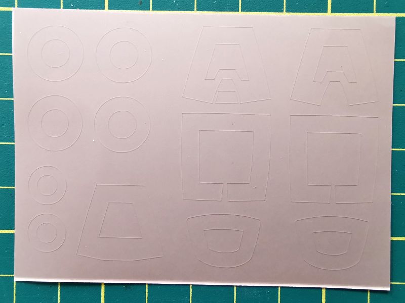 Kolejne dodatki to maski do malowania. Tu muszę przyznać, że modelarze z KPM-u mieli pewien wpływ, na to co, co ostatecznie znalazło się w pudełku. Podczas jednego z naszych co miesięcznych spotkań, tzw. „Klubów” wywiązała się dyskusja na temat masek, które są lepsze, czy wycięte w taśmie kabuki czy w winylu. Przy tej rozmowie obecny był także Filip z ModelMakera, zaś efektem było dołączenie aż dwóch typów masek – winylowych i kabuki. Przy ich pomocy zamaskujemy oszklenie oraz koła podwozia głównego. Wybór, to oczywiście indywidualna sprawa modelarza, wedle upodobań. Osobiście używałem masek obu typów. Miałem problemy z maskami z czarnego winylu, ale z tymi szarymi już nie. Dobrze przylegają do zabezpieczanych powierzchni, a na modelu wytrzymują nawet dłuższy czas.