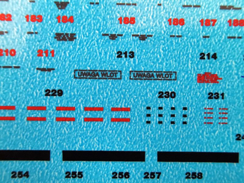 Wiadomo, że ModelMaker to przede wszystkim kalkomanie. Jest to sztandarowy produkt kołobrzeskiego producenta, ten zestaw nie jest w tej kwestii wyjątkiem. W zestawie znajdziemy aż trzy arkusze kalkomanii, przy czym na manie największe wrażenie zrobił ten najmniejszy. To kalkomanie na tablice przyrządów i panele boczne w kabinie załogi. Starałem się zrobić zdjęcia maksymalnym przybliżeniem tak, żeby pokazać jak niezwykle szczegółowo je opracowano. Zawierają one nawet najdrobniejsze detale, w rysunek jest niezwykle wyraźny, wiernie odtwarzający wyposażenie prawdziwego samolotu. Z ich aplikacją też nie powinno być problemu, ponieważ druk zlecono włoskiej firmie Cartograf. Warto także zwrócić uwagę na nazwę i numer katalogowy. Tego typu kalkomanie pojawiły się także w modelu Su-22 i wcale się nie zdziwię jak się okaże, że stanowią one zalążek nowej linii produktów. Swoją drogą przy dzisiejszej jakości wykonania modeli wtryskowych, takie kalkomanie stanowiłyby ciekawą alternatywę do wydruków 3D czy tablic fototrawionych.