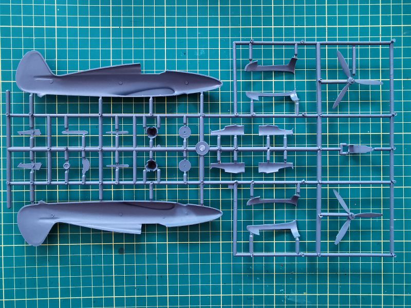 Podstawę zestawu tworzą trzy dość spore wypraski wykonane z szarego tworzywa. Czy formy przeszły jakąś regenerację, tego nie wiem, ale wypraski nie wyglądają źle. Ogólnie czysto, a nadlewki występują w minimalnych ilościach i są łatwe do usunięcia. Pierwsza z wyprasek zawiera połówki kadłuba, gondole silnikowe, śmigła z kołpakami oraz trochę drobnych detali. Wszystkie powierzchnie zewnętrzne mają delikatne ale wyraźne linie podziału blach, w niektórych miejscach są także nity. Nie ma natomiast kołków pozycjonujących wzajemnie połówki kadłuba. Skrzydła i usterzenie pionowe przyklejamy na styk.