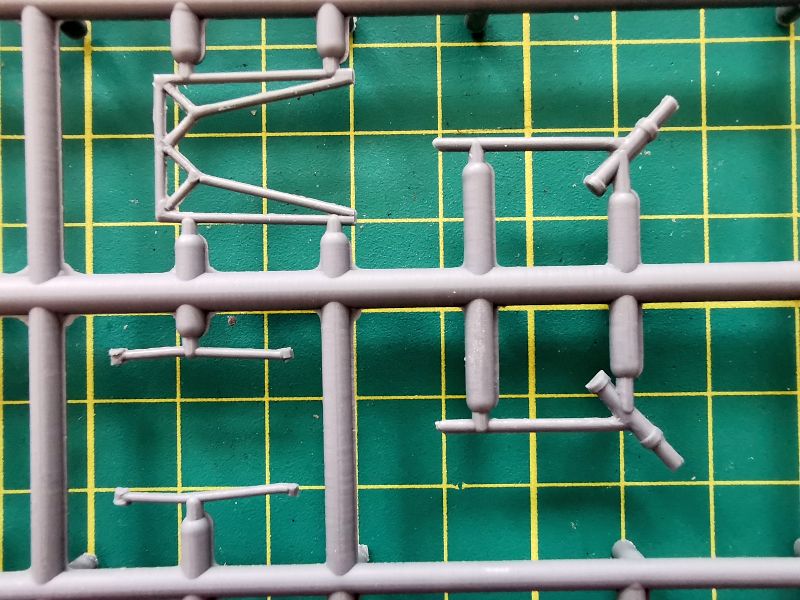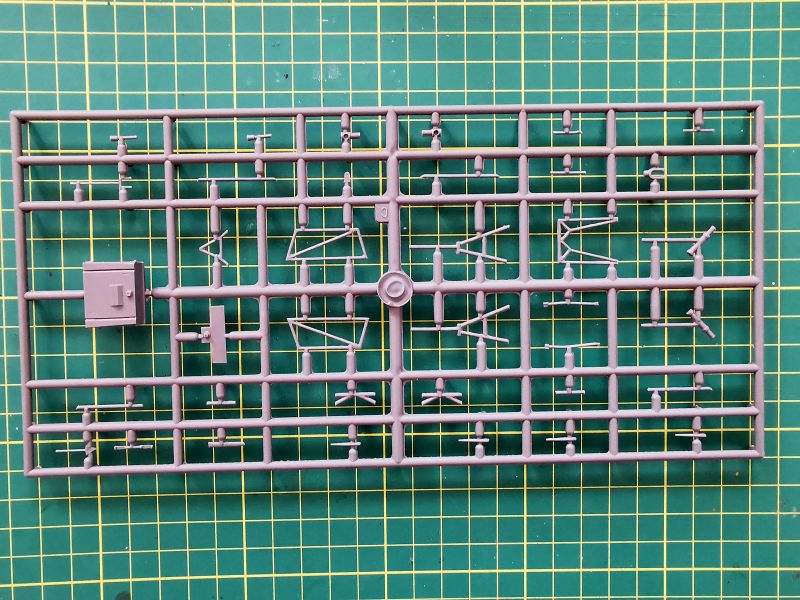 Trzecia ramka jest nieco mniejsza od pozostałych, znajdziemy tam podzespoły wnętrza – kabiny oaz luków podwozia. Znajdziemy tam także jego golenie. Jak widać na zdjęciach większość detali znajdujących się na tej wyprasce ma kształt podłużnych prętów, dlatego trzeba zachować ostrożność przy ich wycinaniu i obróbce.