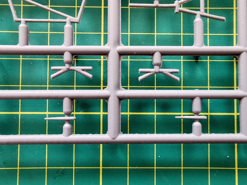 Kolejna wypraska to skrzydła, usterzenie poziome, koła, korpusy bomb. Oczywiście trochę drobiazgów też się znajdzie. Także w tym wypadku nie mam zastrzeżeń, co do jakości wykonania poszczególnych elementów. Ograniczę się tylko do stwierdzenia, że wszystkie powierzchnie sterowe to integralne elementy skrzydeł i usterzenia, zaś imitacje pokryć płóciennych wykonano w sposób poprawny i bardzo subtelny.