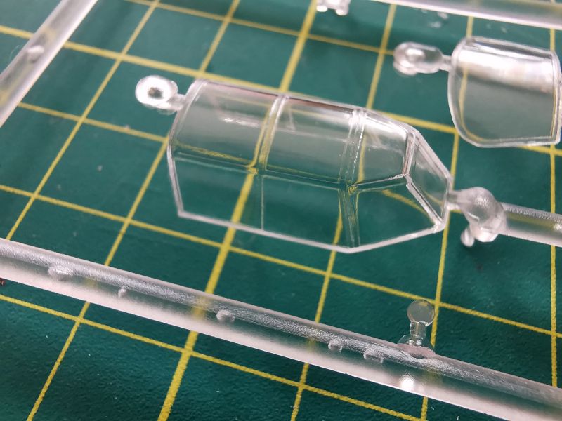 Oszklenie znajduje się na pojedynczej wyprasce. Jest osłona kabiny, szyba w dolnej części kadłuba oraz klosze lamp pozycyjnych. Jakość wykonania tych elementów jest dobra. Odtworzenie ram oszklenia prawidłowe, także grubość i przejrzystość elementów nie wzbudza obaw. Jedyne na co muszę tu zwrócić uwagę, to konieczność oddzielenia wiatrochronu od osłony kabiny, jeśli ktoś chce mieć kabinę w pozycji otwartej. W modelu jest jeden element.