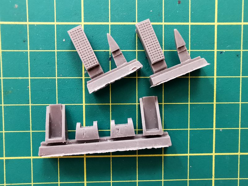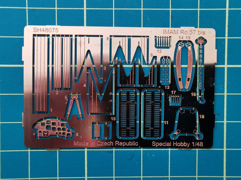 Ponieważ mamy do czynienia z modelem wykonanym w technologii short run muszą tu być także dodatki wykonane z innych, niż tworzywo sztuczne materiałów. Producent wyposażył nas zatem z średniej wielkości fototrawioną blaszkę. Jej zawartość to tablica przyrządów, pasy oraz trochę innych detali kokpitu. Ponadto znajdziemy stabilizatory bomb oraz hamulce aerodynamiczne, lub coś co sprawia takie wrażenie. Tablicę przyrządów uzupełnia klisza z zegarami.