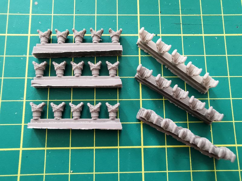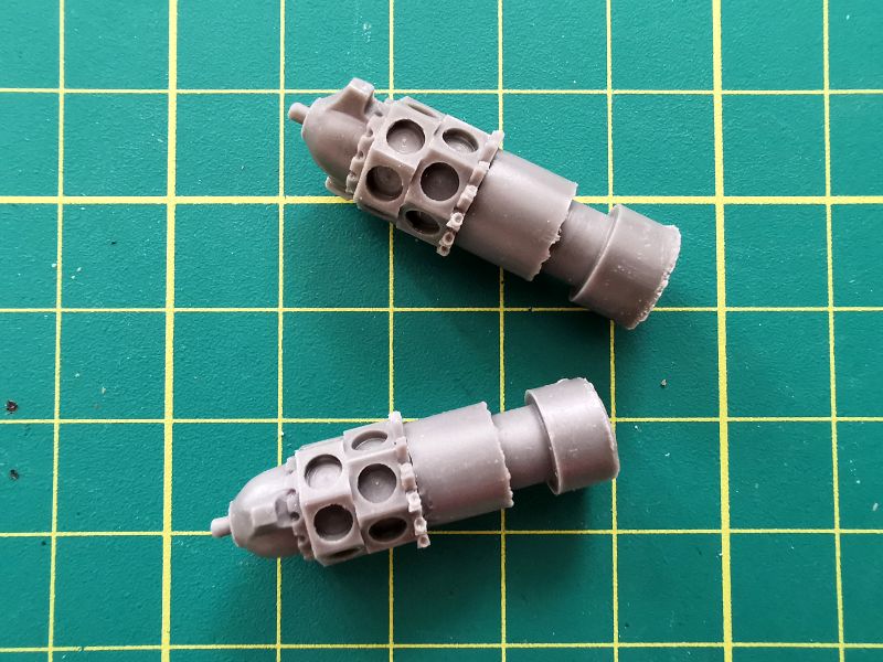 Znacznie większe wrażenie robi woreczek z odlewami z żywicy. Jest tego naprawdę sporo. Kompletne makiety silników wraz z osłonami. Różnego rodzaju wloty powietrza, lufy karabinów maszynowych, wyrzutniki bombowe a także detale kabiny. Nie mogę się także przyczepić do jakości wykonania tych odlewów. Detale ostre i wyraźne, nie ma tez żadnych wad technologicznych w postaci pęcherzyków powietrza czy miejsc nie dolanych jak należy.