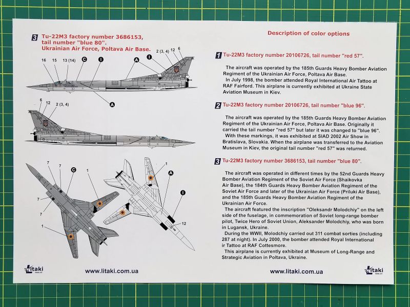 Firma Litaki Model Kits postanowiła pójść za ciosem. Po dość ciepłym przyjęciu przez społeczność modelarską debiutu tego producenta w segmencie modeli samolotów w sakli 1/144, przyszła kolej na następny model w tej skali. W obu wypadkach chodzi o bombowiec strategiczny Tu-22M Backfire. Jako pierwsza ukazała się odmian M2, określana jako Backfire-B, teraz na rynku pojawiła się chyba najbardziej rozpoznawalna wersja M3, czyli Backfire-C. O którym zresztą znów stało się głośno z uwagi na Operację "Pajęczyna" przeprowadzoną przez ukraińskie siły specjalne.