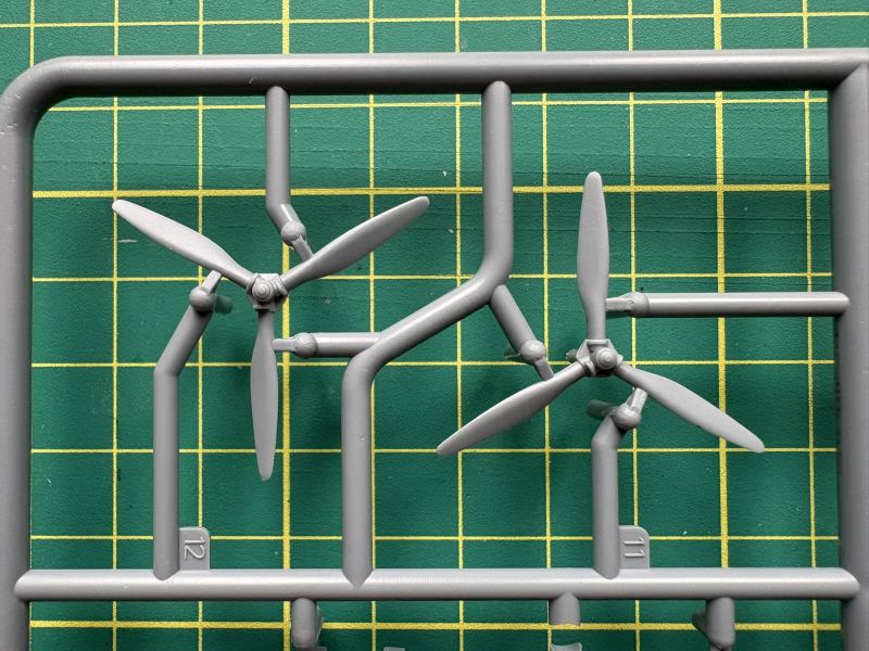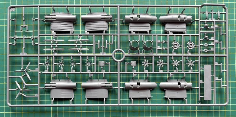 Różnice wynikają z oczywistych zmian konstrukcyjnych, które pozwoliły na przekształcenie szybowca transportowego w samolot transportowy. Większość detali potrzebnych do odwzorowania tych zamian w modelu znajdziemy na wyprasce oznaczonej jako „G”. Znajdziemy na niej głownie podzespoły układu napędowego, czyli zmodyfikowane elementy skrzydeł z gondolami silnikowymi, same silniki, śmigła czy kolektory spalin. Niektóre z detali występują w dwóch wariantach, ale nie wszystko wykorzystamy. Przydadzą się zapewne w modelu kolejnej odmiany tego samolotu. Nieco inaczej wygląda kwestia śmigieł. Do dyspozycji mamy standardowe trójłopatowe, ale także czterołopatowy, eksperymentalny wariant, który wykorzystamy w przypadku wyboru malowania bonusowego. Na wyprasce znajduje się też całkiem ładna tabliczka z nazwą samolotu. Możemy ją zainstalować na podstawce pod model, nie zależnie od jej stylu – fragmentu lotniska, lustra czy czegokolwiek innego.