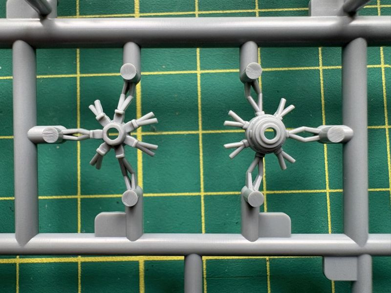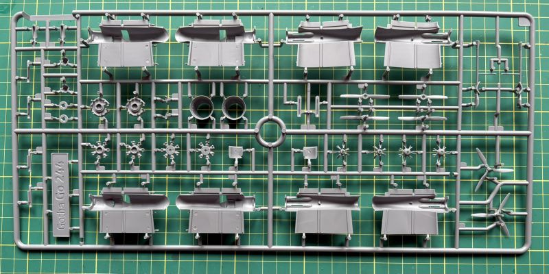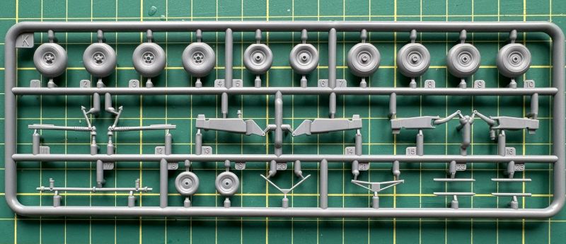 Różnice konstrukcyjne pomiędzy szybowcem Gotha a jego silnikowym wariantem to także podwozie. W wersji samolotu transportowego podwozie było trójpunktowe z kółkiem przednim. Dotychczasową wypraskę „J” zastąpiono nieco większą, oznaczoną jako „K”. Znajdziemy na niej kilka wariantów kół, goleni podwozia przedniego. Tu także wykorzystamy jedynie część, pozostałe dedykowane są do innych wersji, których modele zapewne ukażą się niebawem.