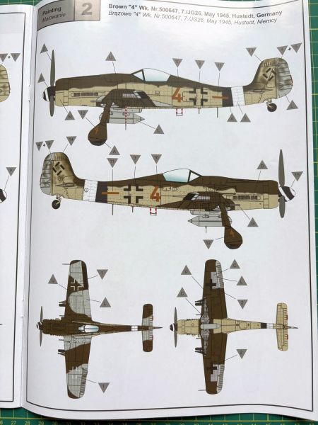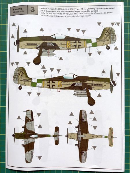 Do wyboru mamy trzy warianty malowania, wszystkie z maja 1945 r. i wszystkie dość atrakcyjne z uwagi na fakt, iż pierwowzory malowano tym, co było akurat pod ręką. Kłopoty surowcowe z jakimi pod koniec wojny borykała się gospodarka III Rzeszy sprawiły powstanie chyba najbardziej efektownych malowań samolotów wojskowych, które chyba nigdy nie przestana być atrakcyjne dla modelarzy. Nawet pomimo tego, że w niektórych przypadkach nie zachowały się zdjęcia, a dany schemat odtworzony został na podstawie dokumentów, jak w przypadku malowania nr 3.