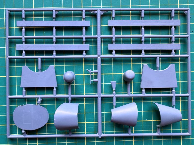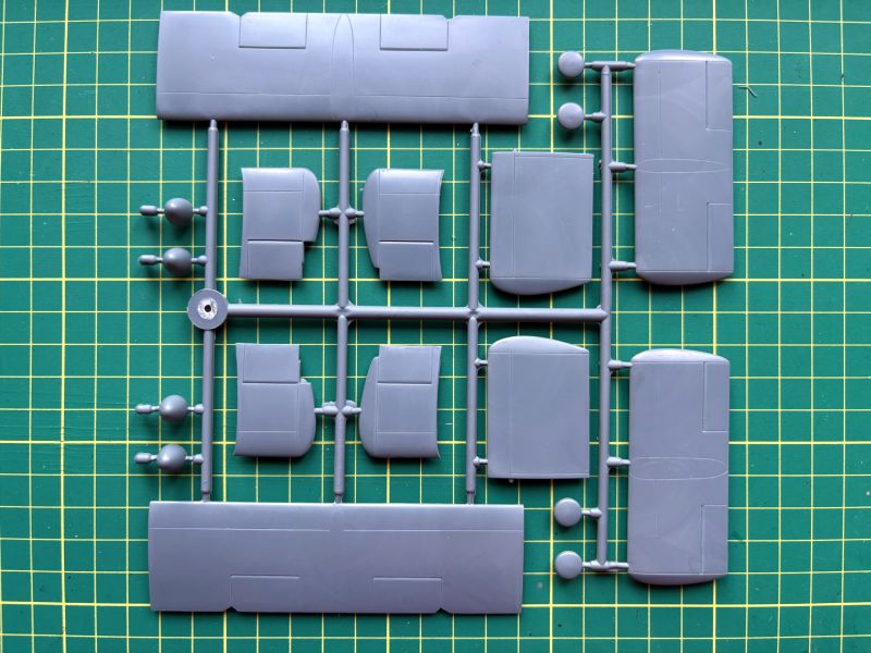Dwie kolejne ramki to skrzydła oraz usterzenie, które jest w dwóch wersjach. Powierzchnie sterowe zostały wykonane jako integralne części płatów i usterzenia, więc jak ktoś chce mieć je wychylone, musi trochę popracować samodzielnie. Detali tu dużo nie ma, co wynika w prostoty konstrukcji pierwowzoru, a nie braku dbałości producenta.