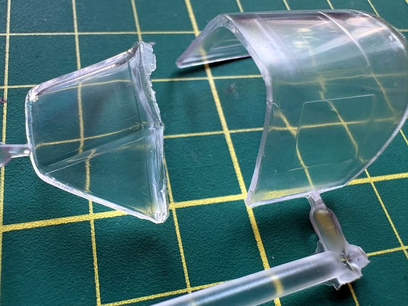 Oszklenie składa się z wiatrochronu oraz osłony kabiny. Ta niewielka wypraska dobitnie przypomina nam, że mamy do czynienia z modelem wykonanym w technologii short – run. Konieczne będzie oszlifowanie krawędzi obu elementów, dobrze też zrobi ich wypolerowanie. Ten zabieg powinien poprawić ich przejrzystość.